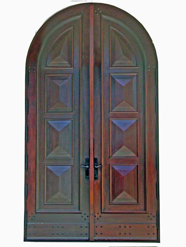 The full arch doors are composed of diamond shaped stout raised panels that are framed with heavy super imposed moldings. Utilizing genuine mahogany procured from responsibly controlled forests the door is manufactured with precise carpentry craftsmanship and excellence in architectural construction..